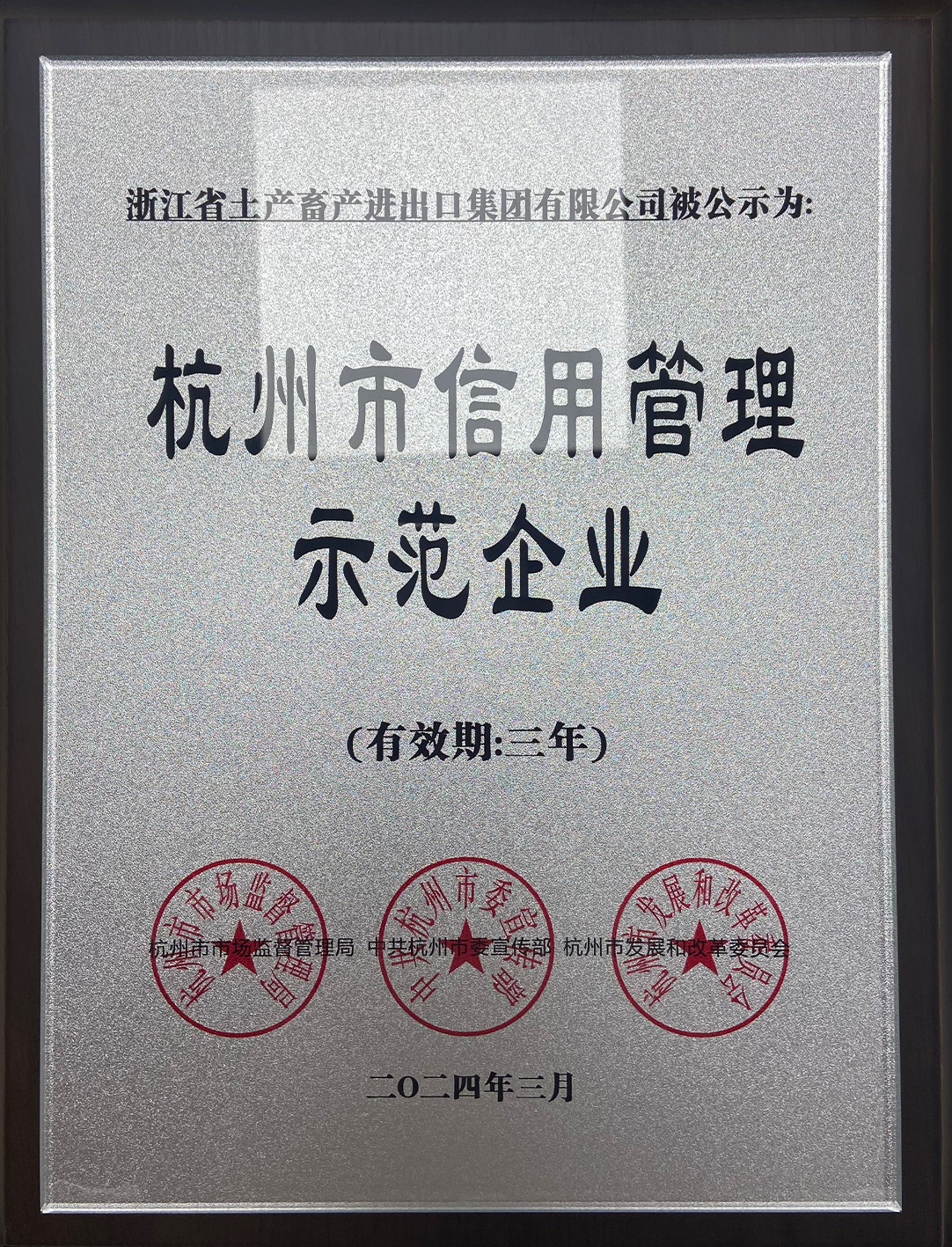 杭州市信用管理示范企業(yè)(2024)