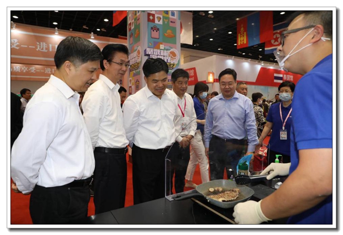 開幕日上午,浙江省商務(wù)廳黨組書記、廳長盛秋平,黨組副書記、副廳長、一級巡視員韓杰,下城區(qū)委書記劉穎在省國貿(mào)集團(tuán)黨委委員、副總經(jīng)理黃道領(lǐng),公司黨委書記、董事長張斌的陪同下,蒞臨公司展位,詳細(xì)了解公司銷售火爆的西班牙橄欖油、巴西牛肋排和捷克牛奶等產(chǎn)品。盛廳長指出,浙江土畜要堅決扛起國企擔(dān)當(dāng),發(fā)揮進(jìn)出口專業(yè)優(yōu)勢、渠道優(yōu)勢、貨源優(yōu)勢,加強(qiáng)現(xiàn)場營銷宣傳,抓住我國對澳洲紅酒反傾銷契機(jī),推動公司澳洲紅酒銷售,加快培育民生類進(jìn)口產(chǎn)品國內(nèi)市場,暢通國內(nèi)大循環(huán)。