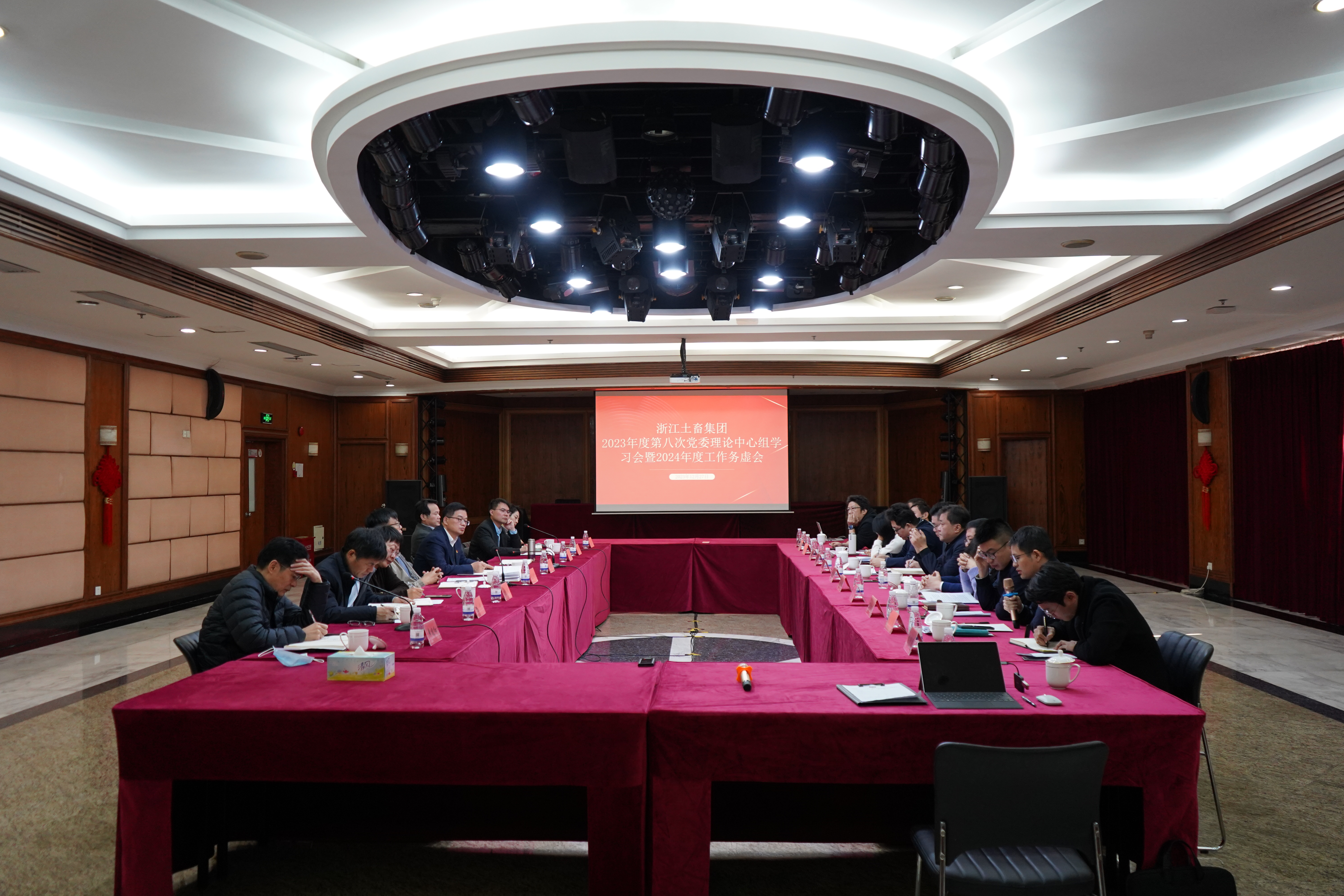 12月27日上午,浙江土畜黨委召開2023年度第八次黨委理論學習中心組學習會暨2024年度工作務虛會,深入學習中央、省委經濟工作會議精神和中央近期重要會議精神,進一步把握內外部形勢、精準研判施策、厘清發展思路,共同謀劃好2024年重點工作。公司領導班子成員,本級職能管理部室、成員公司負責人參加會議。公司黨委書記、董事長張斌主持會議。